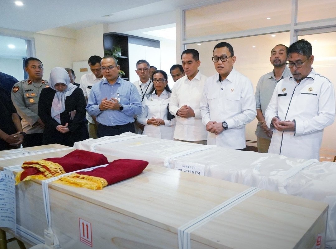 “Hari ini kami menerima dua jenazah pekerja migran dari Korea dengan status awal kerja skema G7 atau visa S9. Saya, mewakili negara, menyampaikan belasungkawa yang mendalam dan doa semoga almarhum Pak Bustanul Arifin dan Pak Wawan Susanto diterima di sisi Allah SWT,” ujar Karding.