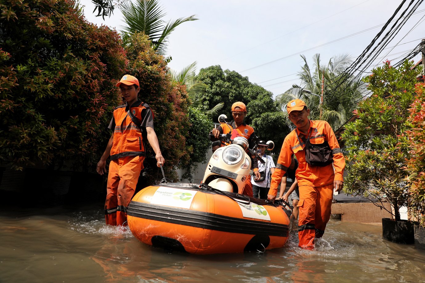 Selain itu, Pasukan Oranye juga bergerak membantu mobilitas warga dengan mengoperasikan satu unit perahu karet.