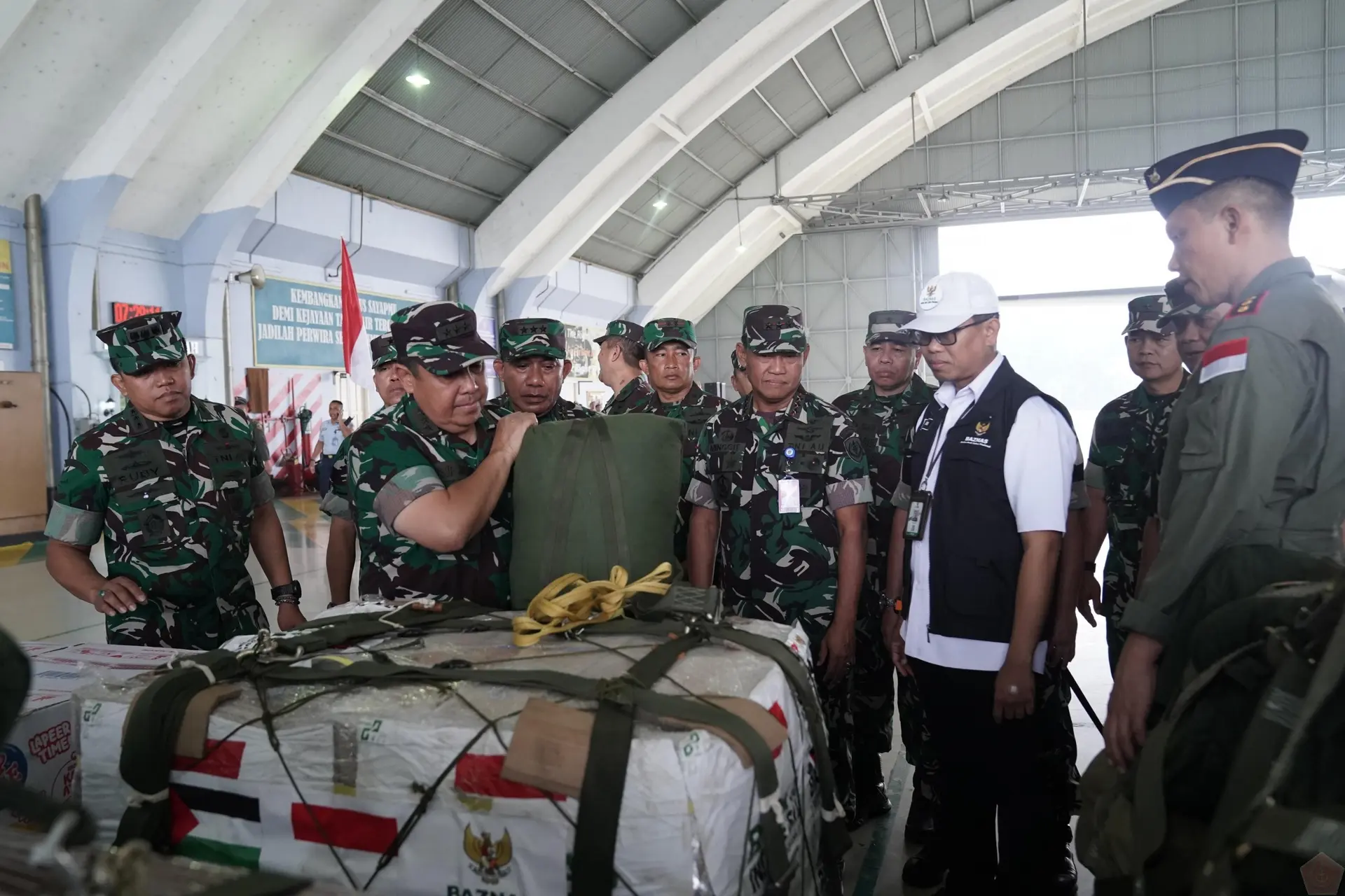 Ia juga melakukan inspeksi langsung ke pesawat C-130J-30 yang mengangkut bantuan logistik dan Payung Udara Orang (PUO) untuk memastikan kesiapan misi.
