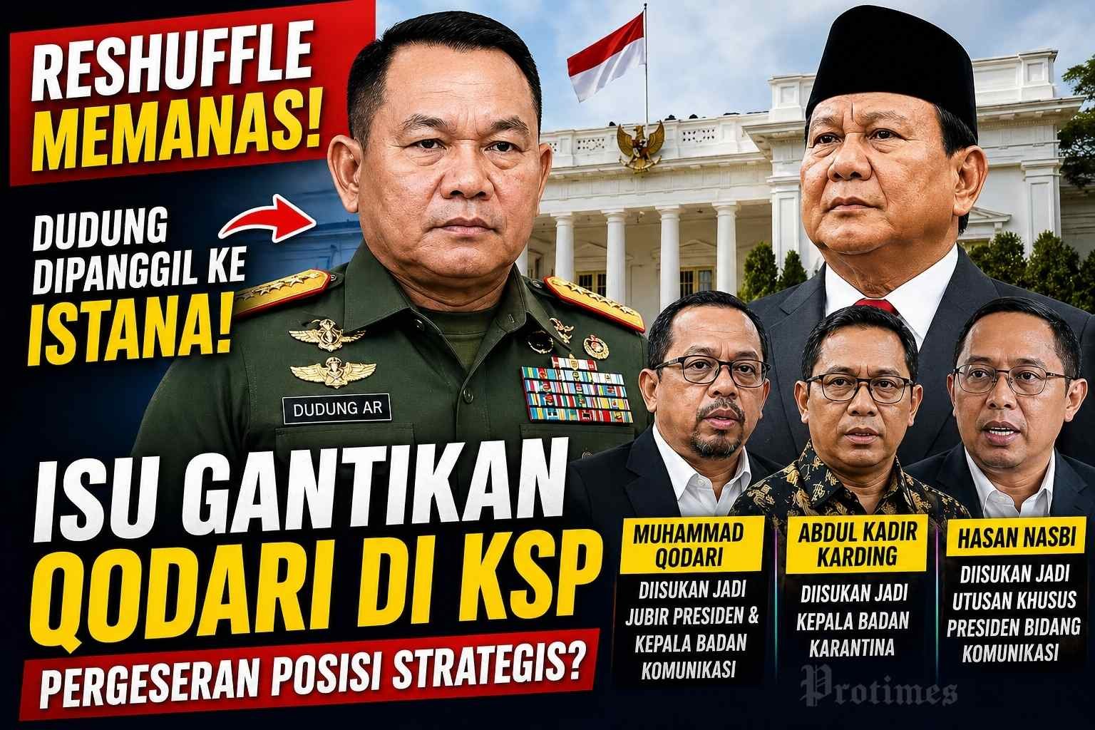 Nama Dudung Abdurachman kini santer disebut akan mengisi jabatan Kepala Staf Presiden (KSP), menggantikan Muhammad Qodari yang dikabarkan akan bergeser menjadi Juru Bicara Presiden sekaligus memimpin Badan Komunikasi Pemerintah, memperkuat fungsi komunikasi di tengah dinamika politik nasional yang terus berkembang.