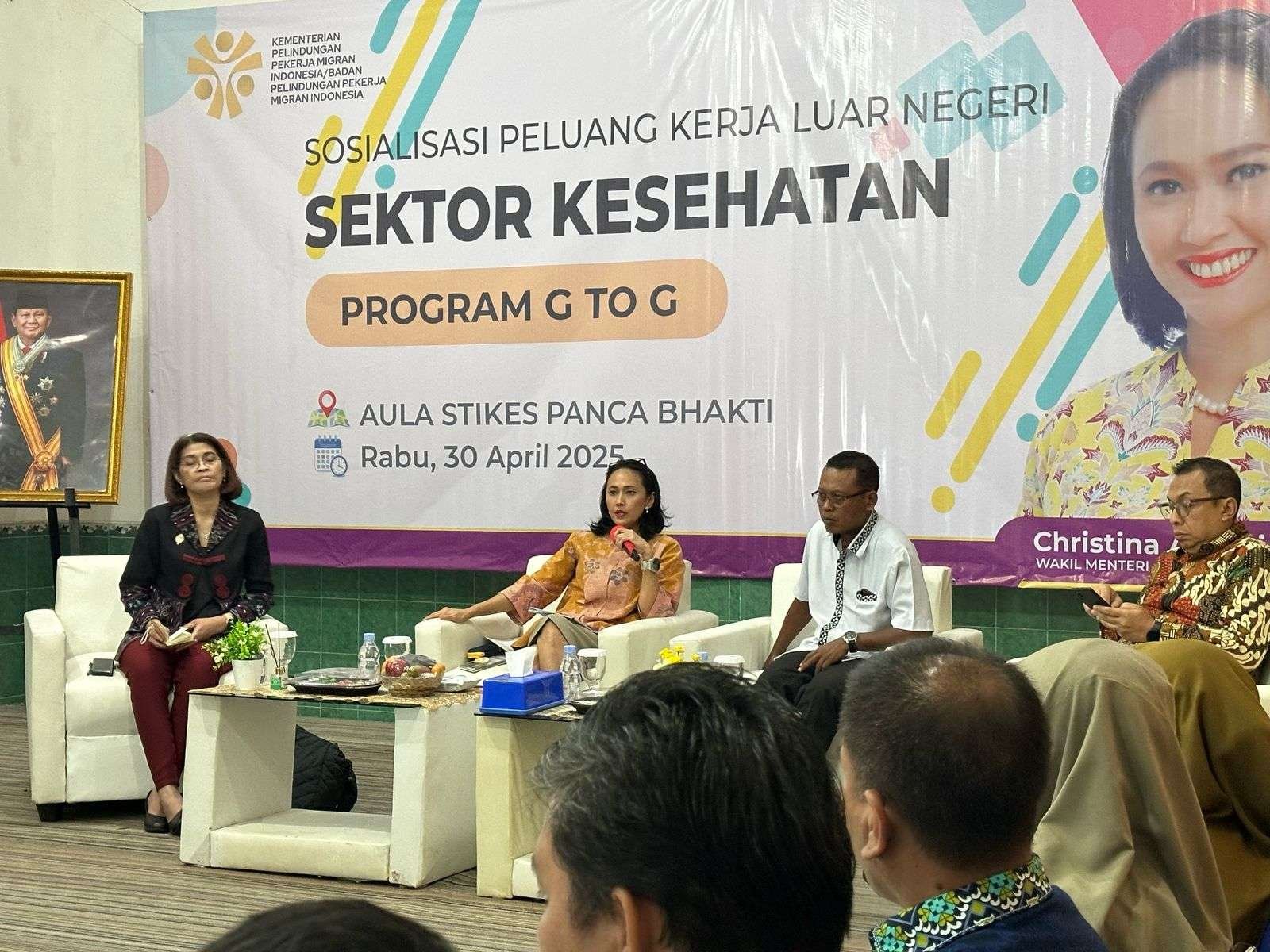 “Indonesia melalui sekolah-sekolah kesehatan dan keperawatan bisa mengambil peluang tersebut,” kata Wakil Menteri Pelindungan Pekerja Migran Indonesia (P2MI), Christina Aryani saat melakukan sosialisasi “Siap Kerja di Luar Negeri” di Sekolah Tinggi Ilmu Kesehatan (Stikes) Panca Bhakti di Lampung, Rabu (30/4/2025).