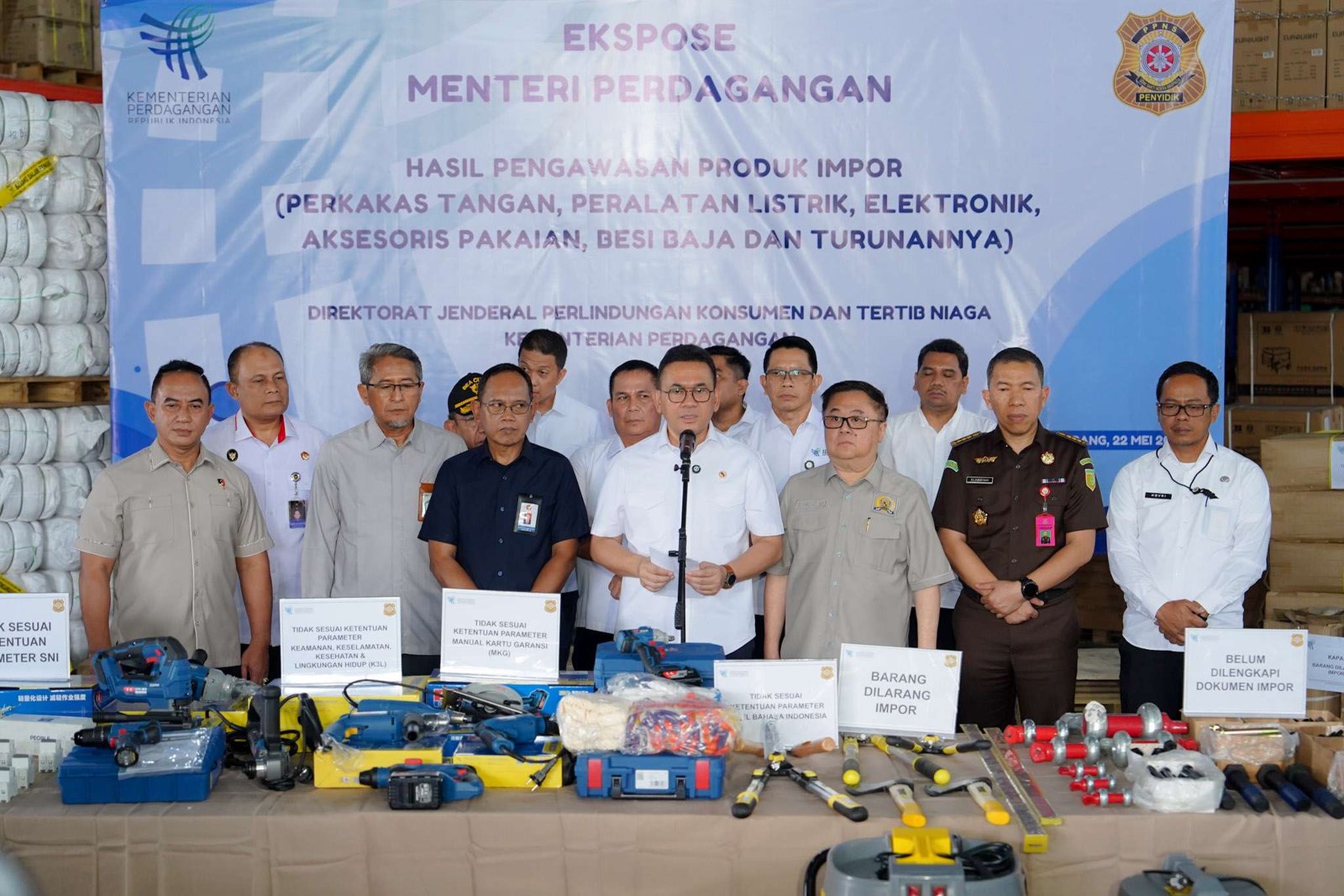 Dalam ekspose yang digelar di gudang PT ATI, Cikupa, Tangerang, Kamis (22/5/2025), Menteri Perdagangan Budi Santoso (Mendag Busan) memaparkan temuan dugaan pelanggaran terhadap 1.680.047 buah produk impor asal Tiongkok dengan nilai mencapai Rp18,85 miliar.