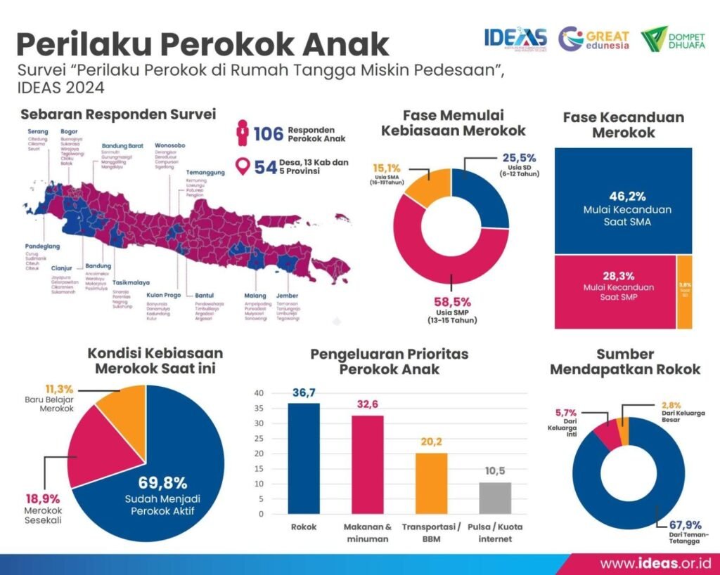 Survei IDEAS, 25,5 Persen Perokok Anak Mengaku Mulai Hisap Rokok Sejak SD Survei IDEAS, 25,5 Persen Perokok Anak Mengaku Mulai Hisap Rokok Sejak SDBy protimes.co on 22 Oktober 2025 9:50 am